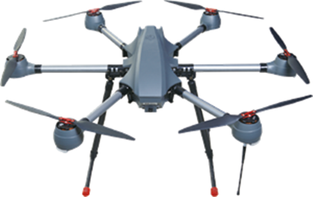 该机为大载重、系留型六旋翼无人机。依托系留供电设备,有效续航时间大于24 小时,有效克服电动无人机续航时间短的缺陷;最大载重13公斤,并预留多种任务挂载接口,可实现功能扩展;主要用于反恐处突、治安维稳、交通疏导、立体防控等执法执勤任务。