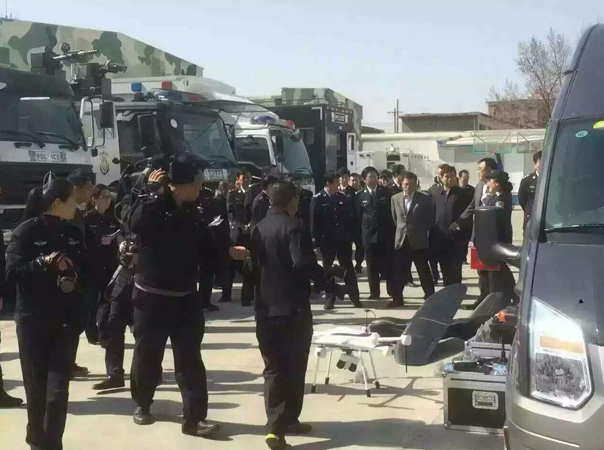 2016年3月30日,呼和浩特市领导莅临现场,实地检查指导“战鹰突击队”授旗仪式彩排工作。领导首先视察了彩排工作的进展,并针对彩排中存在的问题提出具体整改意见;一行还认真观看了鹰眼警用无人机飞行演示,并对无人机及其功能模块作了详细了解,对其性能给予了高度评价。